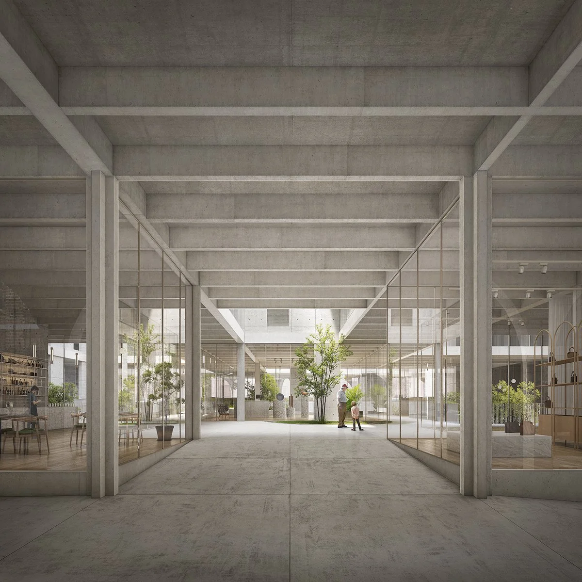 Public realm plays an important role with a large colonnade and public throughfare, energizing the ground level by inviting exploration - parallel to the work undertaking in the spaces above.